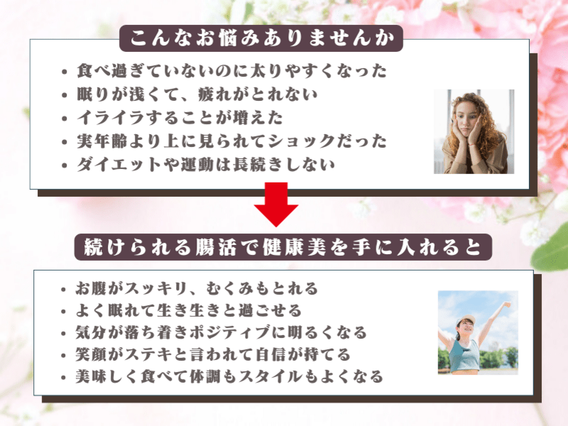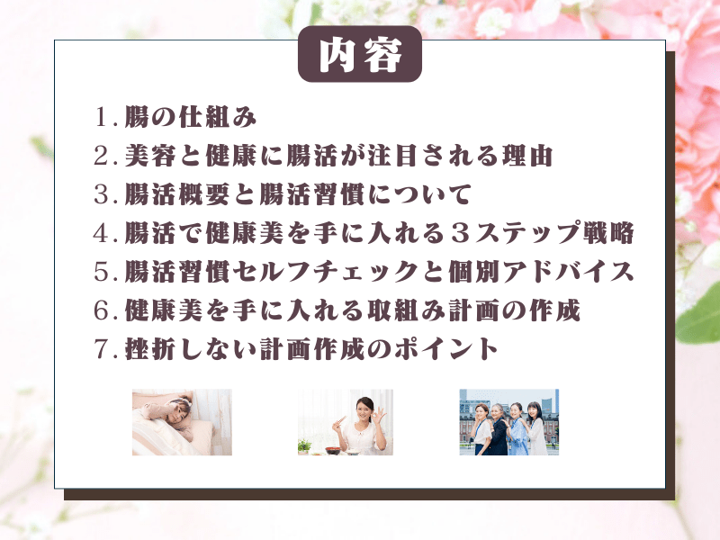腸活の話だけではなく、自分自身の食事のチェック方法を知れて良かったです。