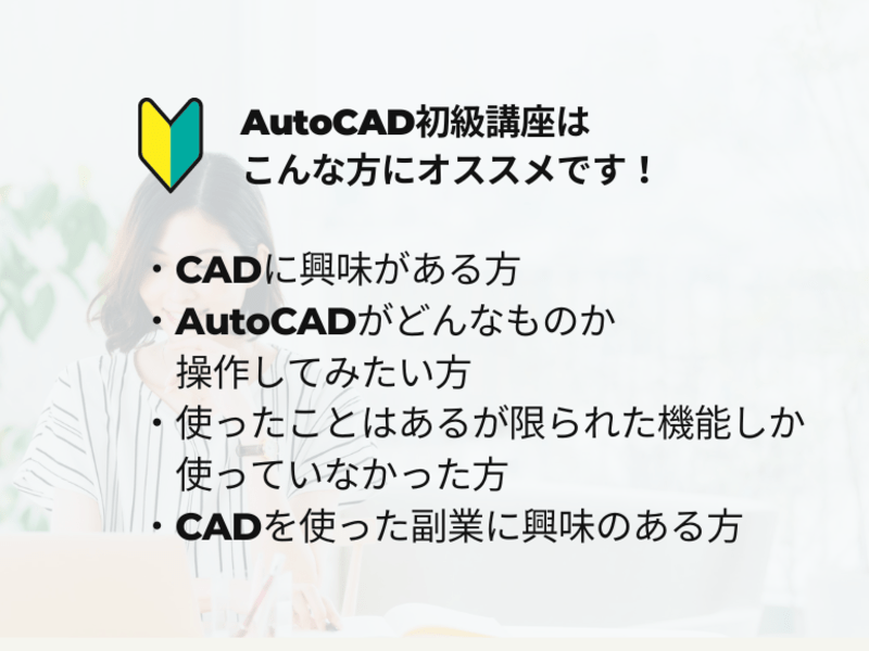 「現役講師にマンツーマンで学ぶ!AutoCAD初級講座【図形の作図編】」への参加もおすすめいたします。
