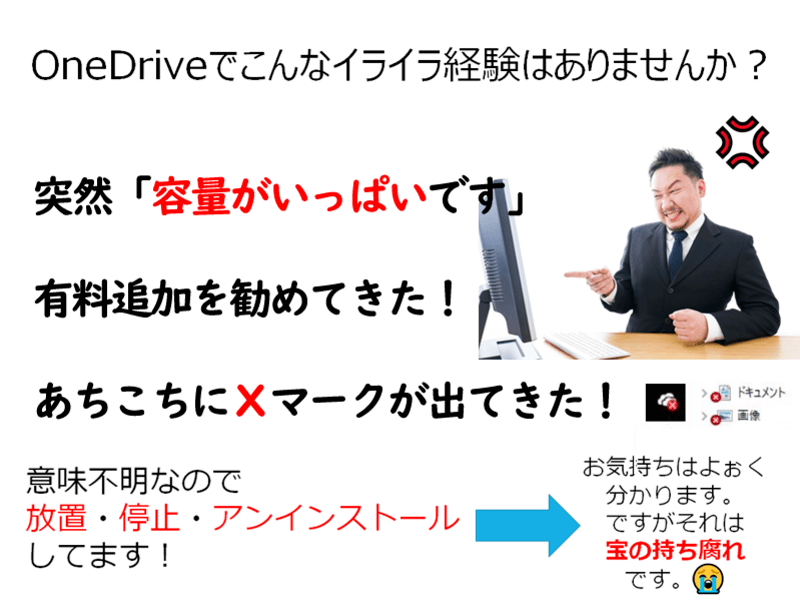 また「このマークは、どういう意味?違いはなに?」とずっとモヤモヤしていたもことが解決出来るだけでなく「教えて貰えて良かった!聞いてなければ大事なデータを勘違いして失うところだった」というような内容が含まれていてOneDriveを使う上でとても勉強になりました。