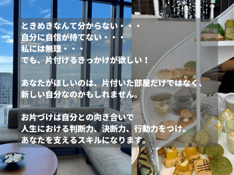 元々片づけは大の苦手で、ときめきの判断も最初は全くできなかった。しかしこんまりメソッドの片づけ法を積み重ねることで、どうして自分が「ときめき」判断が苦手だったのかを知り、自分のマインドにも変化が起こり、片づけコンサルタントとして活動をすることに。