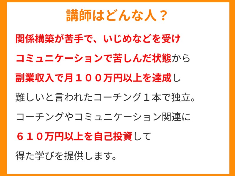 コーチング / 起業方法 / 脳科学 / 心理学 / オンライン/オフライン集客 / 営業などを学ぶ