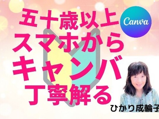 キャンバ初心者ですが、講師の先生があらかじめパソコンで作成したテキストを共有で見られるようにしてゆっくりわかりやすく説明してくださいました。天使が好きですので、可愛い天使のイラストを選び、天使に似合う背景やタイトル等の入力、保存方法など基礎的なことをわかりやすく教えていただきました。操作方法を復習できるようにと、ビデオ録画して講座終了後にビデオ動画を送ってくださいました。初心者でも楽しく学べて講義時間があっという間に過ぎました。ありがとうございました。