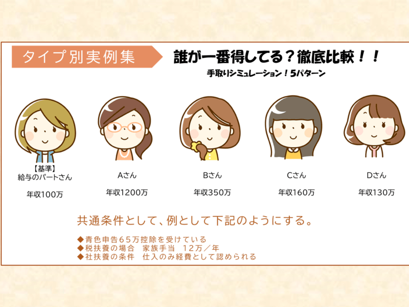 ・自分の場合は、扶養内か扶養を抜けた方がいいかがわかります。
