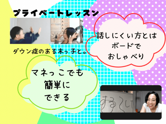 毎月3回お願いしておりますが、今回は月が変わるときに少し間が空いてしまいました。すると、ほぼ毎週行っていたものがない…カレンダーとのにらめっこが続いてました。日中の事業所から帰宅し、「今日美奈先生だよ~」と伝えるとにんまり。時間になりスムースにお話出来るように準備をしていると、もう時計とにらめっこというくらい、楽しみの一つなんだあと実感させていただきました。「もう時間だよ!」と伝えると、少し残念なおお顔…それくらい本人を夢中にさせる講座でした