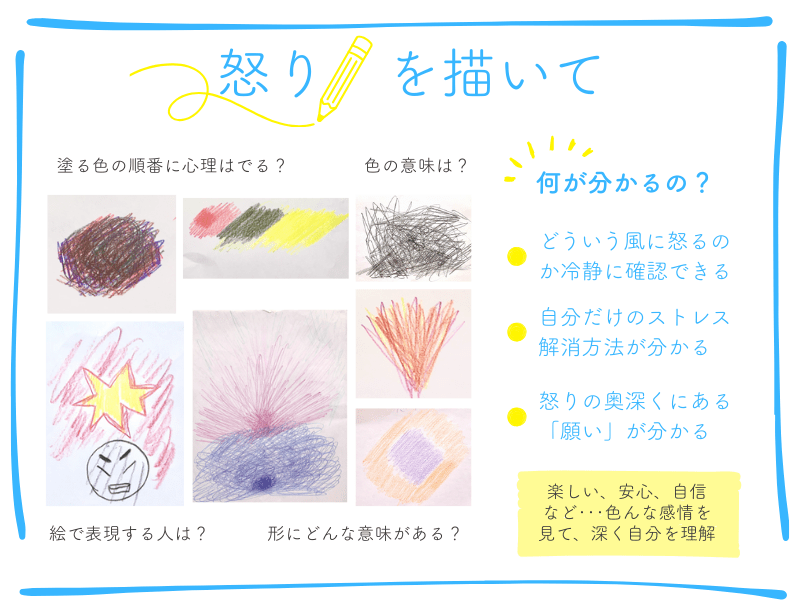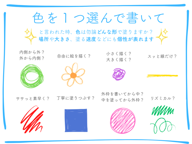 色を選んで描くだけで、心の奥にある思いや本音が自然と浮かび上がる——そんな不思議な体験を通じて、どんどん心が整理されていく。
