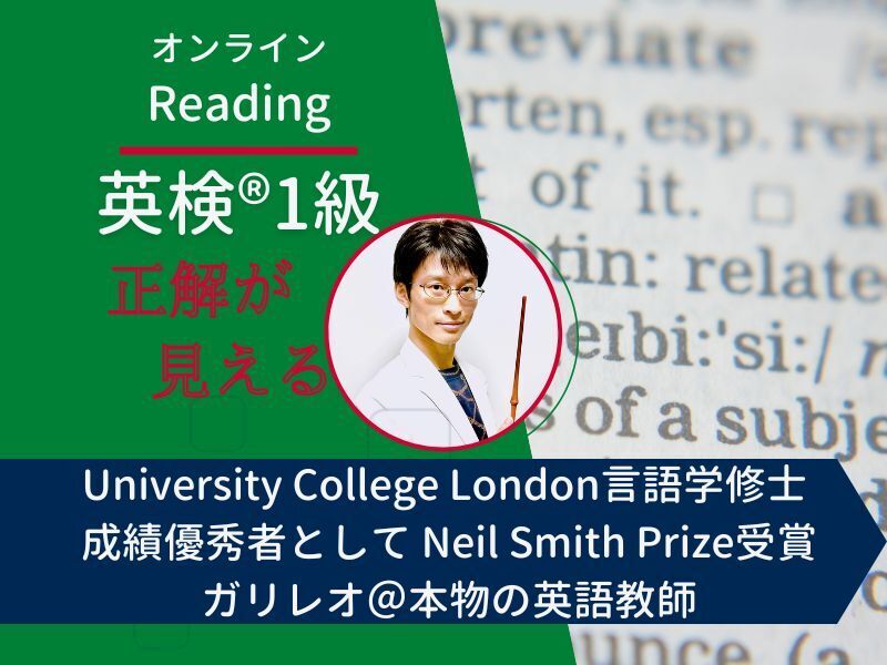 University College London (MA in Linguistics)での留学を終えた「本物の英語教師」ガリレオが、英検®1級の問題(大問2, 3)を題材に、英語長文の論理の読み解き方を教えます。