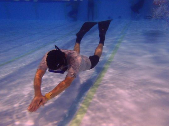 東京アクアティクスセンターの水深1.4mの25mプールや水深5mプール、その他のプールにて、平日夜/休日昼、月に2~10回程度、フィンスイミングの講習・練習を2時間しています。