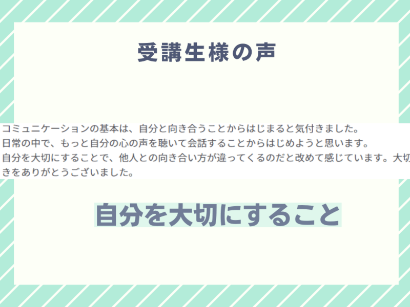 人間の心理に基づいた理論は分かりやすいものでした。また、具体的な実践例をお話しいただき苦手意識が少しなくせそうです。