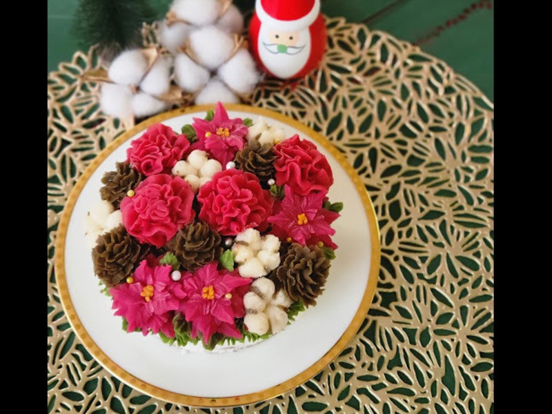 初めてさんでも大丈夫。1回限りのあんこのお花のクリスマスケーキレッスンです。