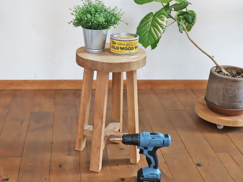 自然の風合い、温かみのある天然木のスツールをDIYしませんか? 電動工具・のみ・鋸などの本格的な工具を使用します