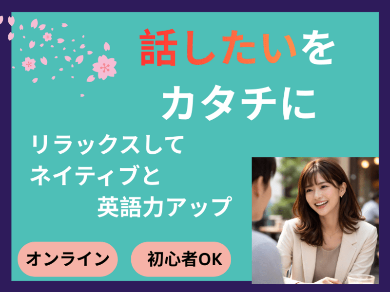 ネイティブの方と話す機会が欲しくこちらの講座を受講しました。初心者ですが、30分ずっと英語のみ、日本語なしでした。100%理解出来たとは言えませんが、このような環境が持て、耳を慣らしていく訓練になると思います。