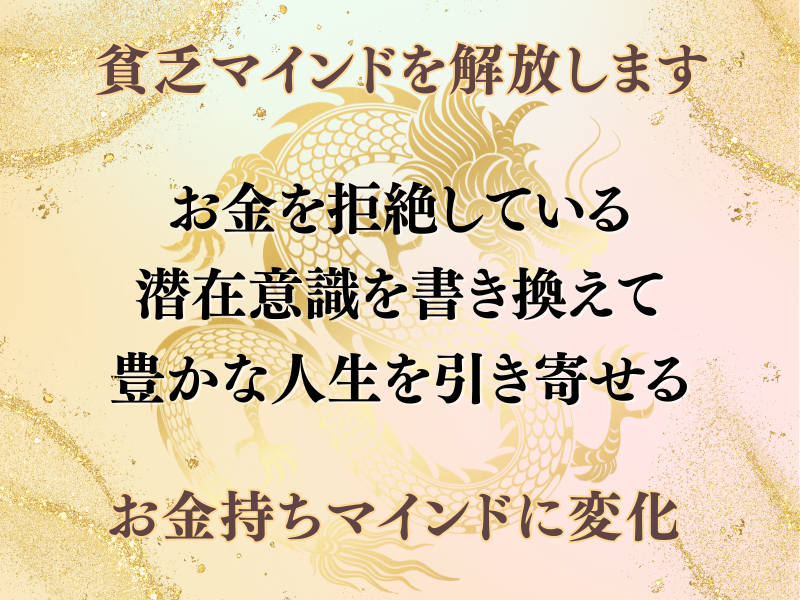 といった深い悩みを潜在意識レベルから根本から解消します。