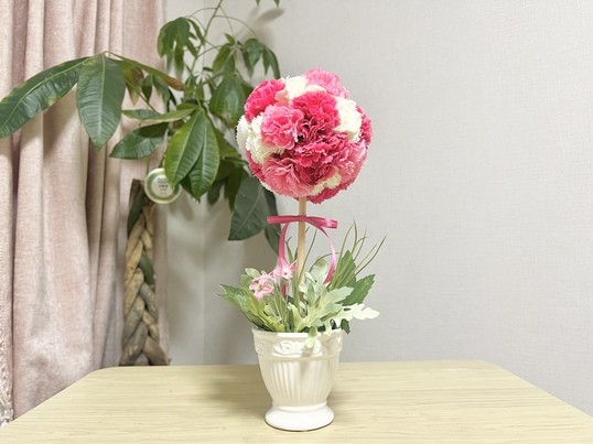 3色のカーネーションを使ったトピアリーで母の日のプレゼントを作りませんか?