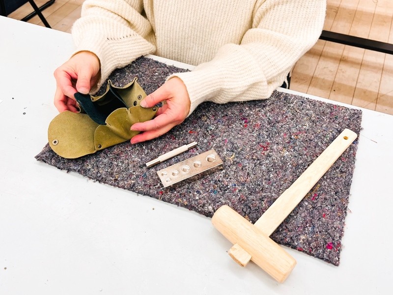カシメやばねホックの打ち方のコツを教えていただいたので、