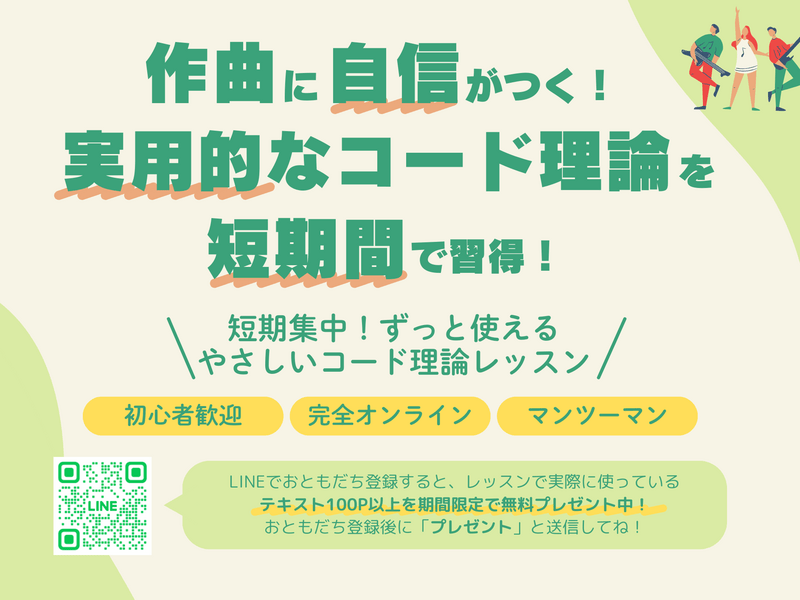 初めて作曲する人がつまづきがちなコード理論をよりわかりやすく、作曲に活かせる知識を短期間で解説していきたいと思います。