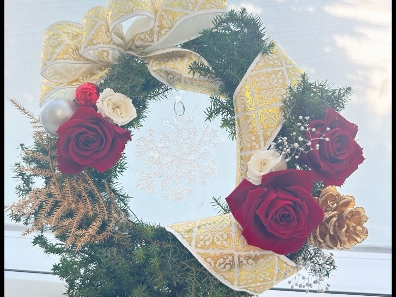 クリスマス用に安っぽくない本物のリースを作ってみたくなり、友人と参加しました。杉の香りを感じながら、知らないことを短時間にも関わらずたくさん知ることができました。プリザの開花方法や華やかなリボンの作り方など。先生が幅広く色んなものを製作されている方なので、作品集を見せていただくだけでも癒されます。きちんと説明してくれた上で、自分でやってみる時間をしっかりとれ、一つ一つ丁寧にする作業が非日常で楽しめました!こんなに素敵なリース作りを教えていただき感謝で。