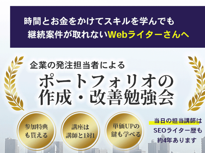 Webライター、Webデザイナー、Webディレクター、コーダーといったWeb系の非企画職の方々に対してクライアントが望む最終成果を出す方法を教えています。当団体が主催する講座にご参加頂ければ、クライアントに評価され、囲い込まれるWeb系人材に近づきます。==================現在開催中並びに今後開催予定の講座==================... +続きを読む
