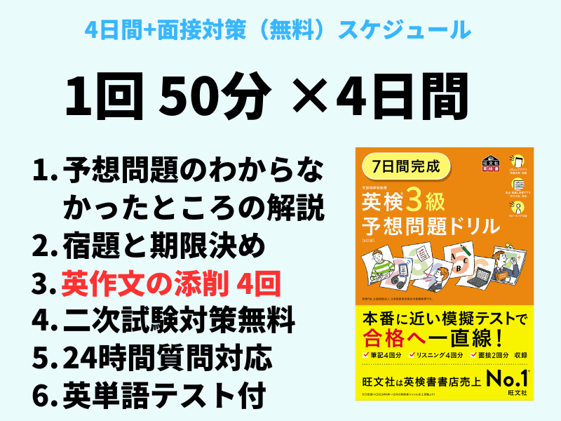 ※ライティングの添削は必ずいたしますので