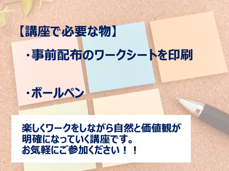 価値観は人生の羅針盤になります。どこに向かっていいかわからないまま人生を歩くと迷ってしまったり、不安にかられたりしてしまうので、自分自身を理解するためにまず講座を受けてみることをおすすめします。