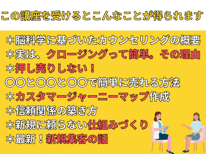 「売り込みなし!たった7つのSTEP!脳科学に基づいたカウンセリングテクニックで🔰新人スタッフでも1カ月でリピート率80%に」