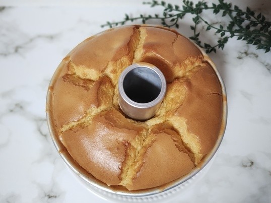 初シフォンケーキに感動(しっかり膨らんで)です。お味はカステラに近いねと家族の食レポでした。また、近々復習してみます。今度は手外ししてみますね。