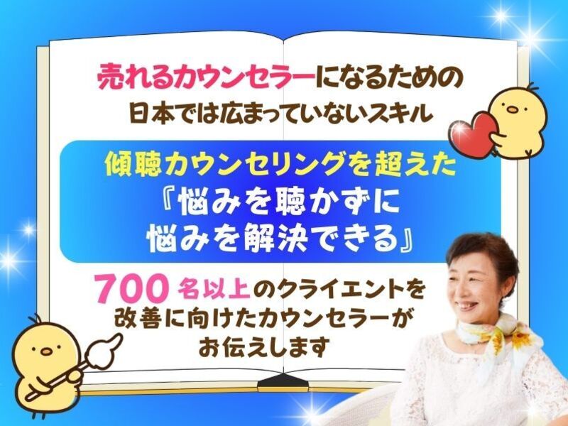 カウンセラーは、なかなか稼ぐことが難しい仕事ですが、こんなに他のカウンセラーさんと差別化でき、クライエントさんにも本質的改善をお渡しできるということは今後「稼げる」につながると思いました。