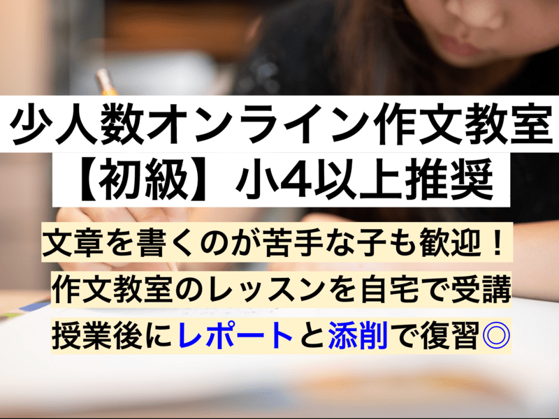 初級クラス(グループレッスン)…作文が苦手なお子様でも、とにかく楽しく取り組めるレッスンを行います。レッスンではお子様のやる気を引き出すため、できるだけ良いポイントを伝えるよう心がけ、指摘は事後のフィードバックを中心に行います。★このページのクラス