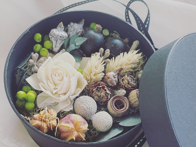 フラワーデザインの体験レッスン。おしゃれな作品を完成させます。