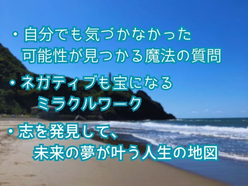 ワークを進めながら、先生がじっくりとお話を聞いて下さるので安心して受講できました。また自分の核となる本当の価値観がわかったことで、今まで悩んでいたことの原因がわかりました!