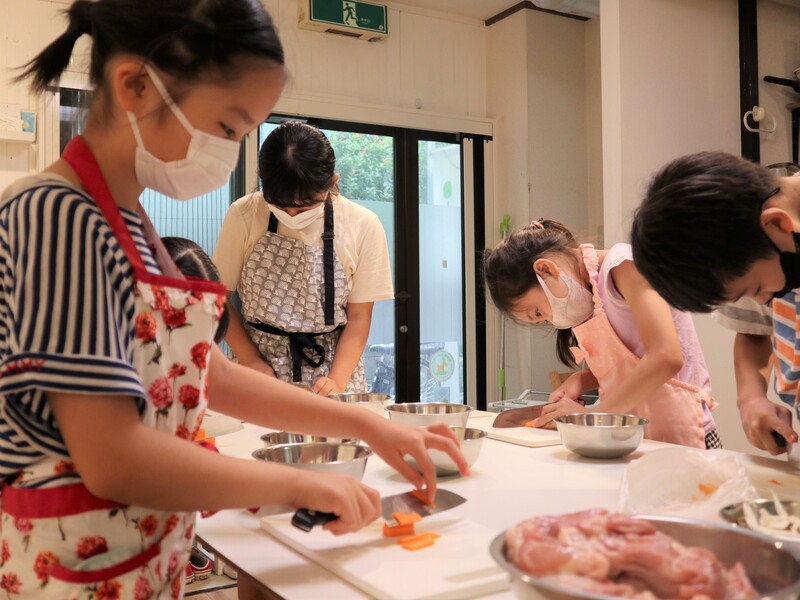 当日発表された12種類の食材から、みんなで話し合い9種以上を使って3品をつくります。親はお昼に食べに来てください。