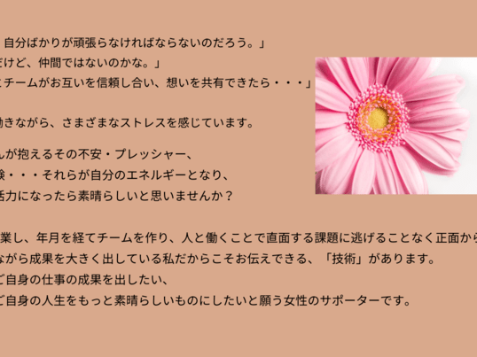 女性経営者や女性リーダーが、ご自身のかなえたい目標や夢を「手に入れたい方向」に自分で舵取りできるようになります!