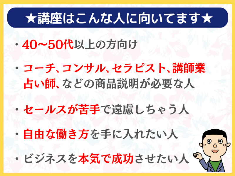 起業したいのに思うように進んでいないという方にオススメの講座だと思います。