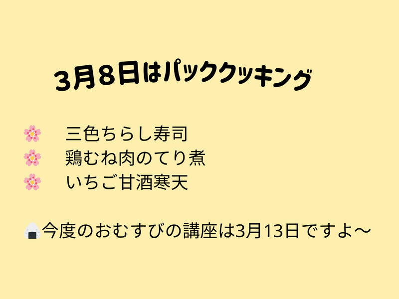 春らしいメニューですが、これ袋でできるの?と思われますよね〜。今回は、一部工夫をしながらのお届けになります。