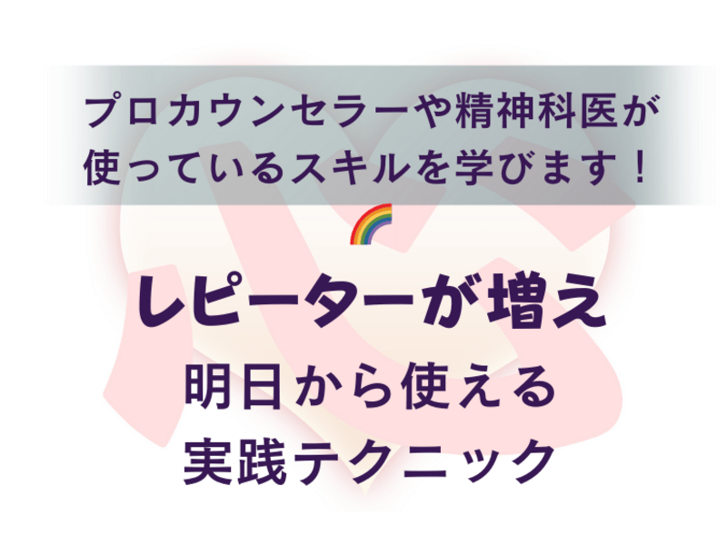 レピータの多いプロカウンセラーや精神科医が使っているスキルを学びます。