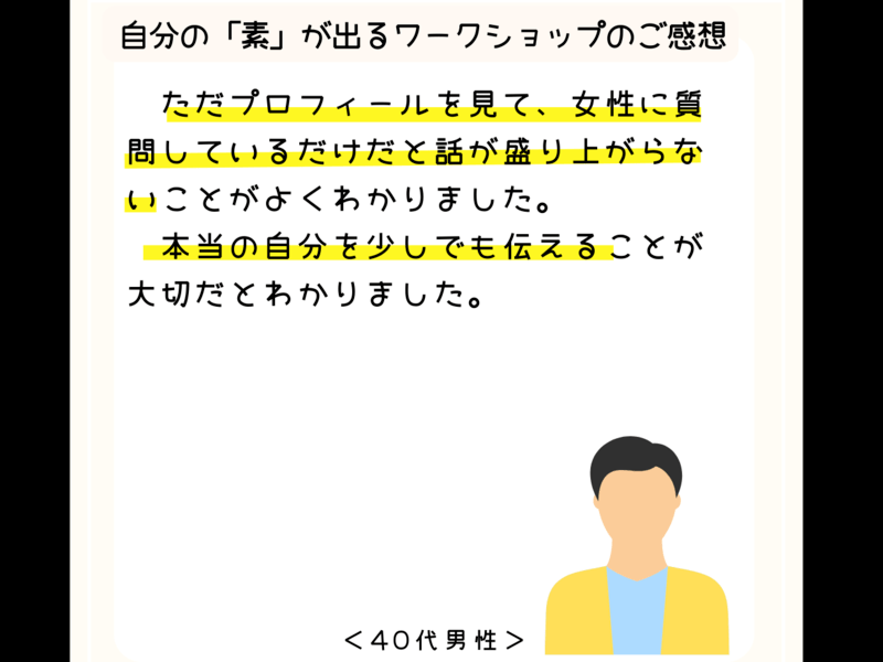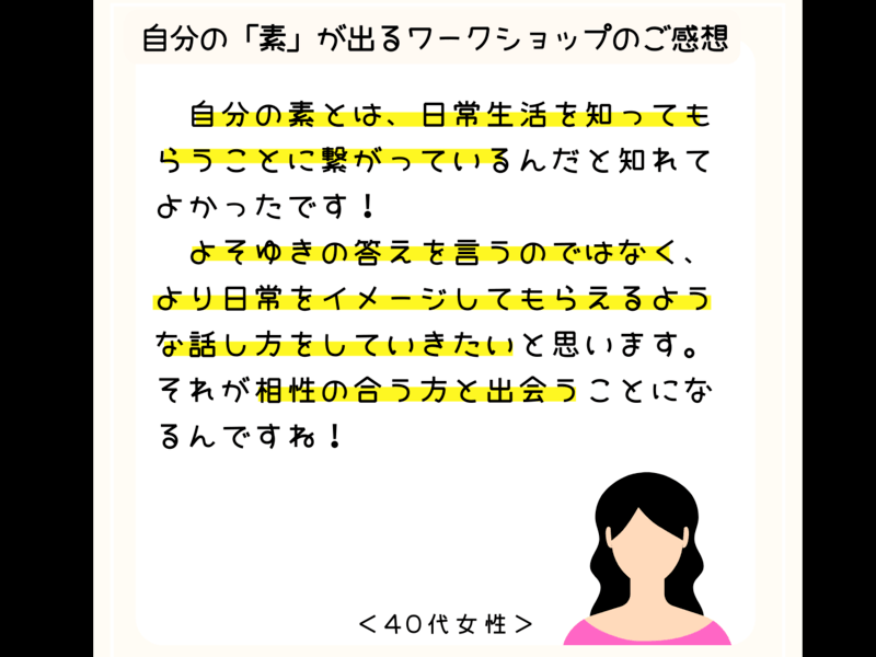 ワークも実践的なもので、私の言葉にも、客観的な視点の感想をくださりました。