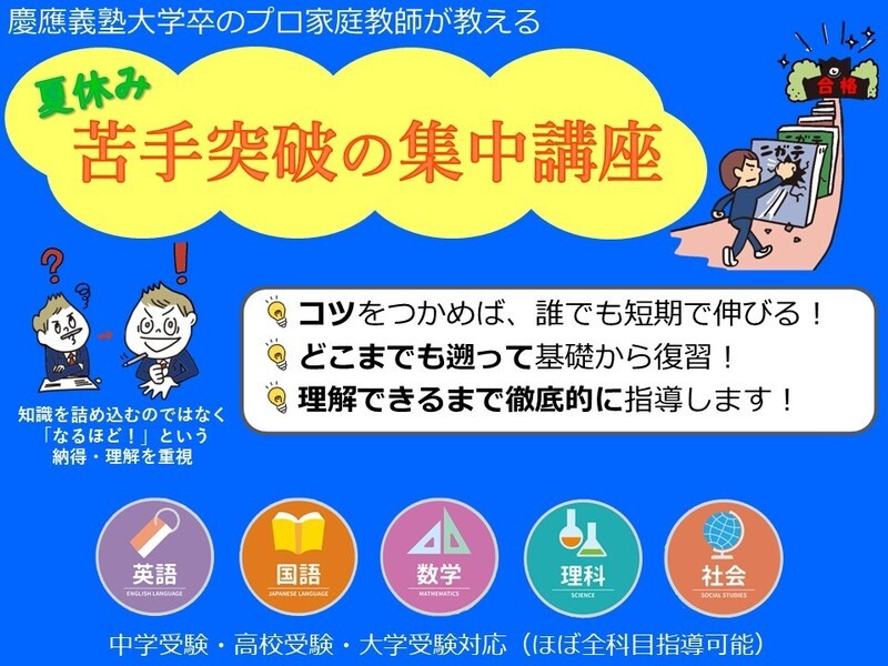 塾講師歴7年、家庭教師歴3年、のべ100名以上の指導実績を持つ。