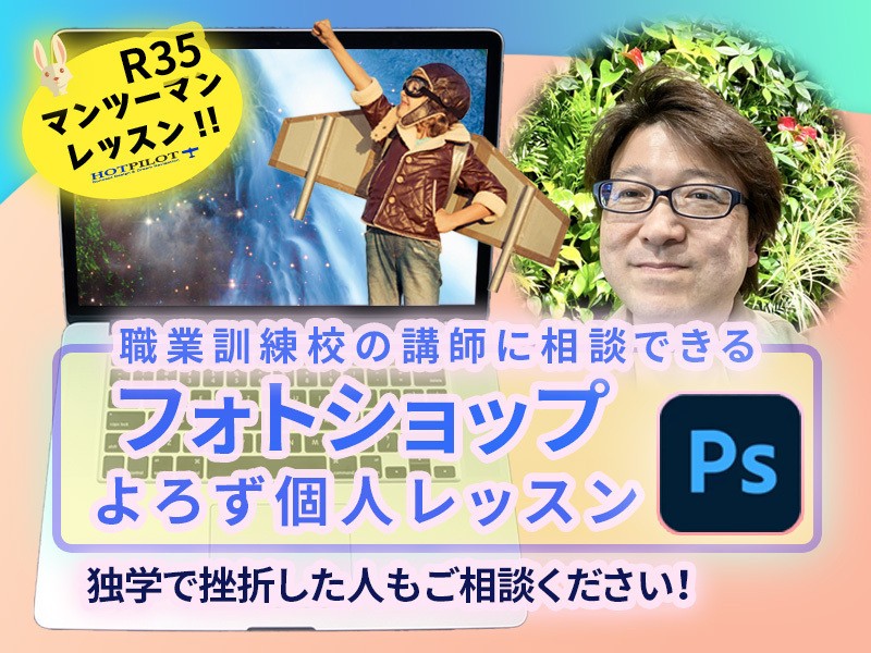 当講座では、Adobe社のアプリPhotoshopを使用します。講座に参加する前にあなたのパソコンにPhotoshopをインストールしておいてください。制品版のPhotoshopを既にお申し込み完了している方は、それを使用しますので、当日までに使用できる状態にしておいてください。