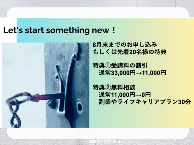 まず、副業の現状や方向性を学びながら、「なるほど」「へえーそうなんだ」など理解を深め、仕事に対する前向きな新鮮な気持ちを抱きました。