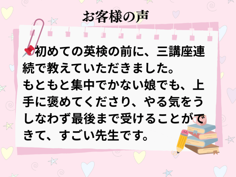 保護者としても、娘が楽しんで英語を学んでいることが嬉しい限りです。
