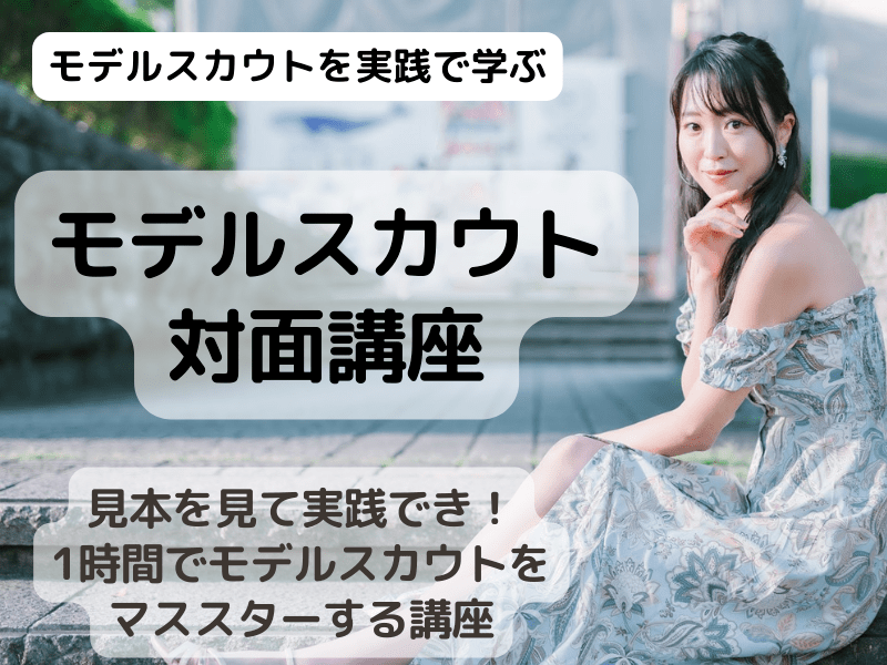 対面でモデルをスカウトするための3つのノウハウをお伝えする講座です。講師の実践した後に受講生に実践して頂きモデルスカウト出来るまでフォロー