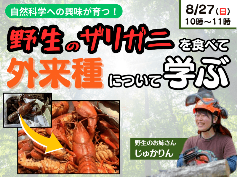 自然科学への興味が育つ!野生のお姉さんがザリガニを食べながら「外来種と自然」について解説する、ガサガサ・うじゃうじゃ・ウマウマな授業です🌟
