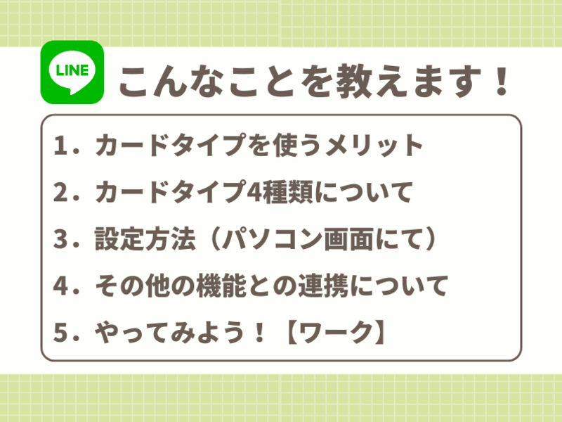 【LINE公式】のカードタイプメッセージ作り方を中心に指導いただきました。