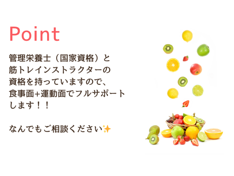 はじめまして!管理栄養士の真帆です!ダイエット相談、離乳食相談、管理栄養士国家試験対策など管理栄養士の知識・経験を活かして皆様のお役に立てればと思っています。よろしくお願いします。
