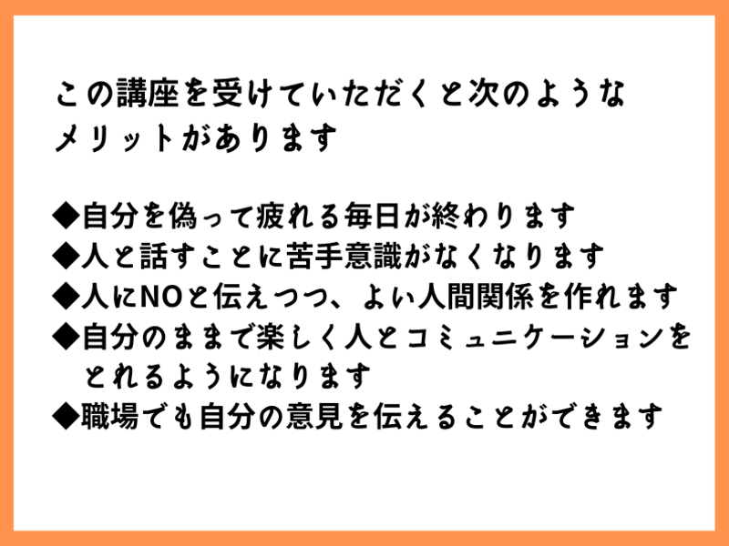 ・自分のままで楽しく人とコミュニケーションをとれるようになります