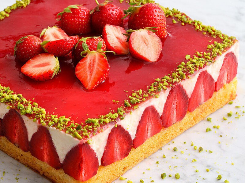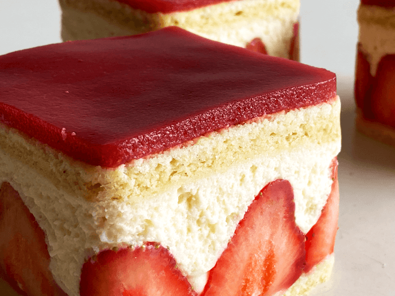⑤苺のグラサージュを作り、ケーキの表面に流す