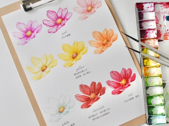 初心者の方も歓迎♩秋のコスモスを水彩画で描いてみましょう