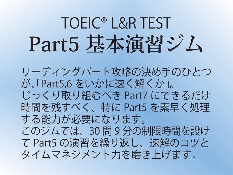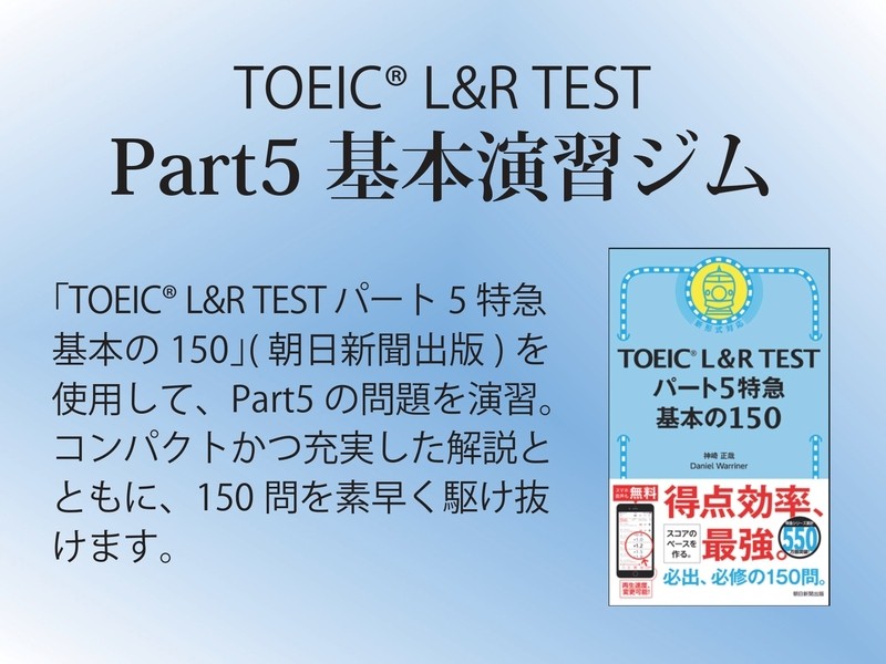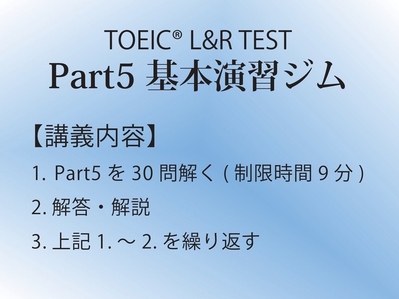 本1冊、150問弱のpart5 をたっぷり演習できる講座でした。