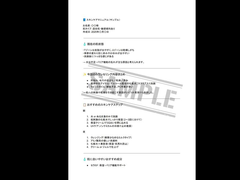 それぞれのお肌や身体の状態などに合わせて、様々なアドバイスをしています。