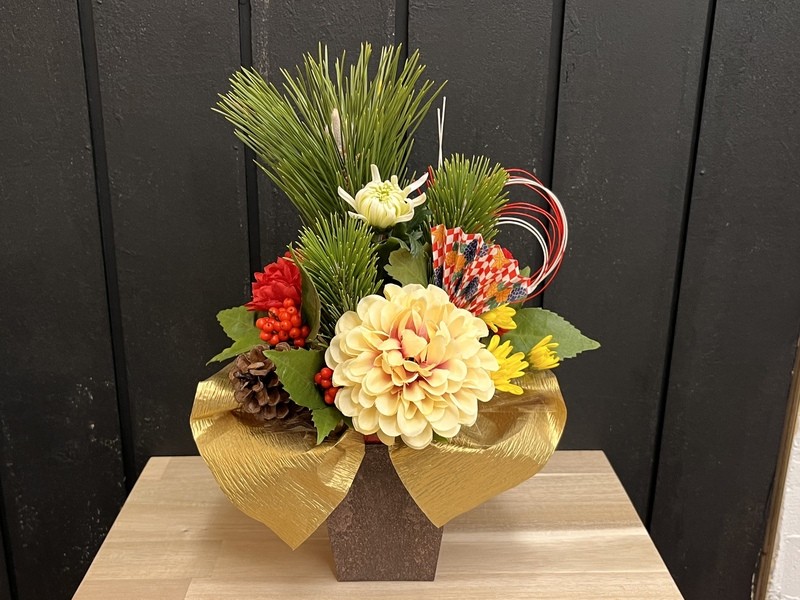 先週のお正月かざりに続くアレンジメントを受講しました。アレンジメントの方が少し難しかったのですが、丁寧な進行でわかりやすくとても楽しかったです。出来栄えもとても満足でした