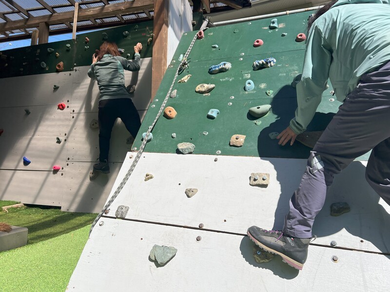 先ずは体験から! 屋内ジムによる筋トレやクライミングボードによる三点確保…など。インターバル速歩による心拍数を計測し可視化を行います